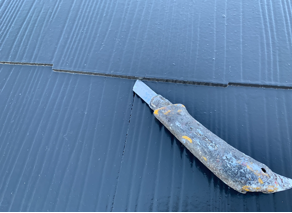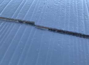 何故そんなことをするのかというと、塗装工事の3回塗りにおいてスレート材の重なりに塗料が溜まることにより縦溝から入った水の排出ができなくなると、中にある防水シートやさらに下にあるベニヤ板を腐らせ、雨漏りの原因になることがあります。