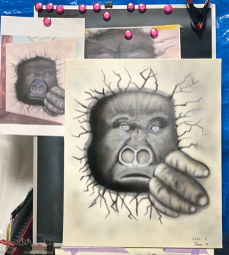 エアブラシアート3・フクロウ エアブラシアート4・ゴリラ(3Dアート)