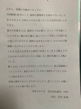 マルイチ建装からのご挨拶