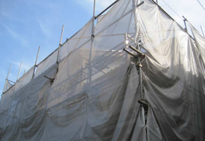 塗装前の高圧洗浄や塗料の飛散防止、職人の落下防止の為、足場を設置いたします。